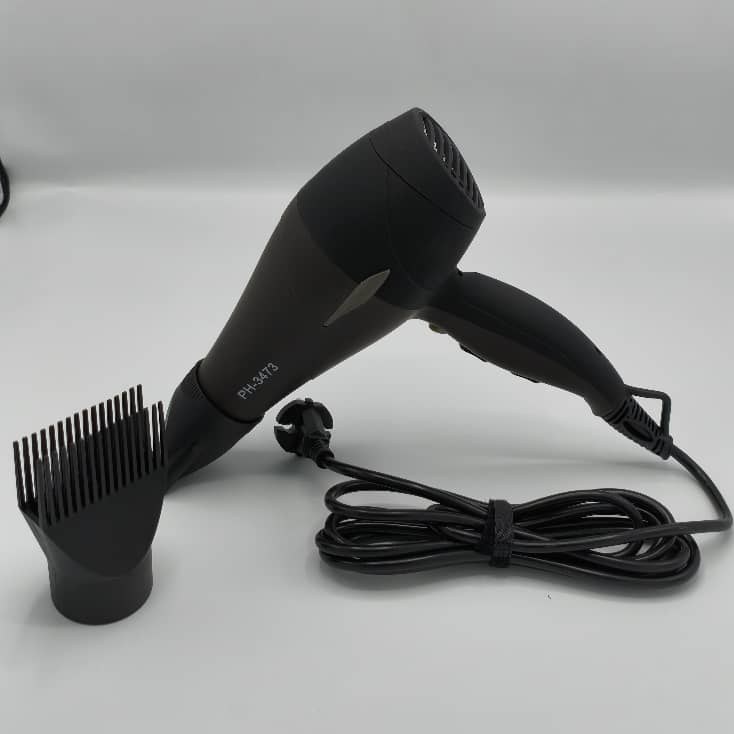 در نگاه اول، سشوار Philips PH‑3473 با ظاهری مدرن و مقاوم جلب توجه می‌کند.